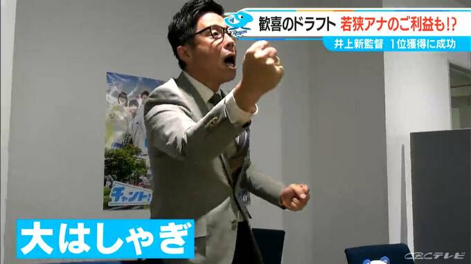 「ことしも!ドラゴンズのドラフトは!成功する!井上新監督!くじを当てる!金丸投手!ドラゴンズに来て!…見えました。井上監督当てています!」