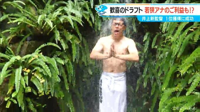 4球団が競合する中、くじを引いたのは、この秋就任した井上一樹監督(53)。そして…滝行のご利益バツグン!金丸投手の交渉権を見事獲得!場所は違えど、二人で歓喜のガッツポーズ!