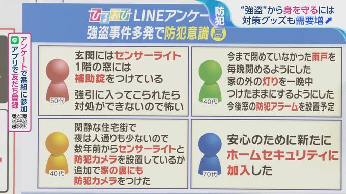 『ひるおび』でLINEアンケートを行ったところ、強盗事件の多発で防犯意識が高まったという人が多くいました。