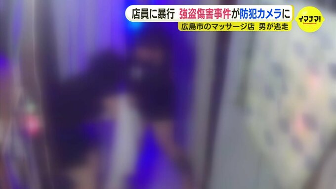 24日、広島市のマッサージ店で、男が女性店員に暴行し現金を奪って逃走した事件で、犯行の状況を防犯カメラが捉えていました。