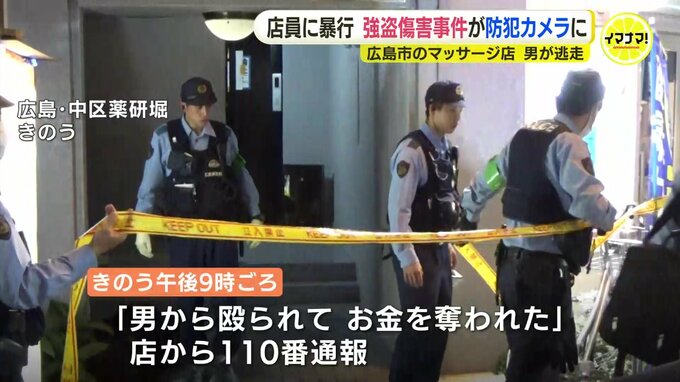 警察によりますと、24日午後9時ごろ、広島市中区薬研堀にあるマッサージ店から「男から殴られてお金を奪われた」と110番通報がありました。
