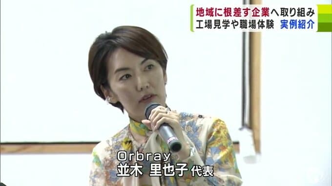 並木代表は、企業が地域に根差していくための取り組みとして工場見学のスペースを設けたり、学生たちの職場体験を受け入れたりして、交流を深める事例を紹介しました。