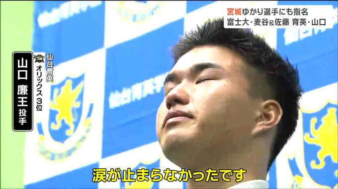 仙台育英高校の山口廉王(れお)投手がオリックスから3位指名。エースとして臨んだ今年の夏は甲子園を逃しましたが、将来性を期待され、堂々の上位指名となりました。