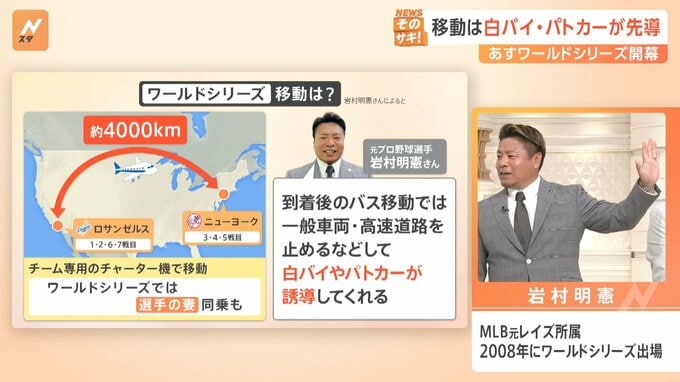 岩村明憲さんによると、チーム専用のチャーター機で移動するそうですが、選手の妻も一緒に乗ることができるということです。