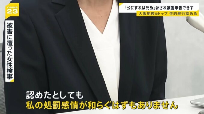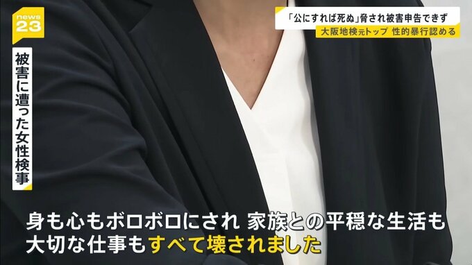 「女性として妻として母としての私の尊厳、そして、検事としての尊厳を踏みにじられ、身も心もボロボロにされ、家族との平穏な生活も大切な仕事も、すべて壊されました。それでもすぐに被害申告できなかったのは、被告人から『公にすれば死ぬ』『検察が機能しなくなり、検察職員に迷惑がかかる』と脅され、口止めをされ、『検察を守らなければならない』と思ったからです」