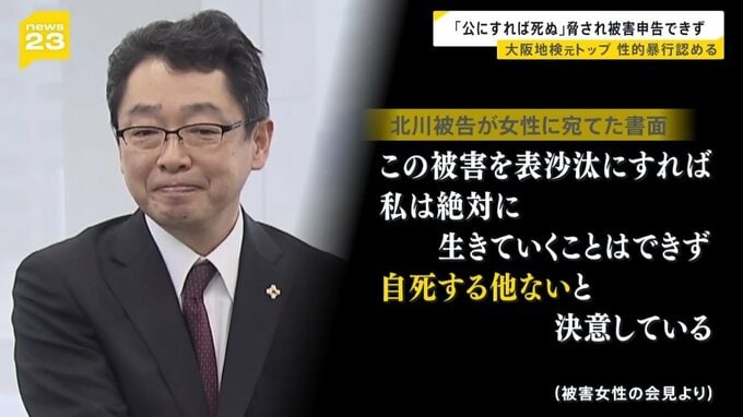 「この被害を表沙汰にすれば、私は絶対に生きていくことはできず、自死する他ないと決意している。この被害を胸にしまってもらえるなら喜んで死ぬ」