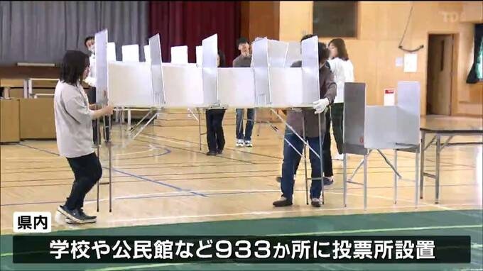 衆院選の投票所になっている仙台市太白区の八木山小学校の体育館でも記載台や投票箱を組み立てる作業が行なわれました。県内では、学校や公民館など933か所に投票所が設置されます。