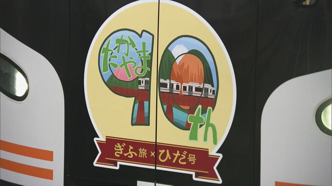岐阜から富山までを結ぶJR高山線が全線開通90周年を迎え、26日、記念列車が高山駅を出発しました。