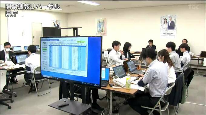 一方、県庁では開票速報などののリハーサルが行われました。今回からは、各開票所から送られてくる開票データをリアルタイムでホームページに反映出来るようになったということです。