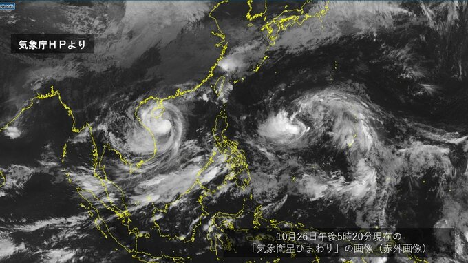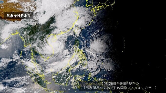 また、大型の台風21号(コンレイ)は、26日午後6時現在、「フィリピンの東」の位置で、時速35kmの速さで西へ進んでいます。
