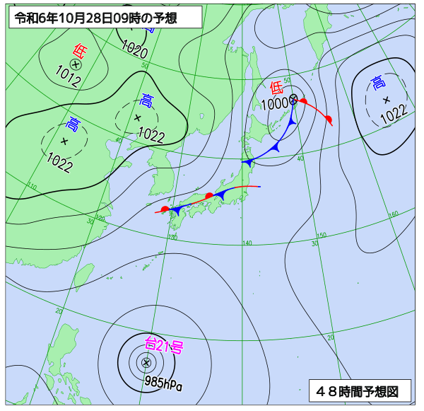 【台風情報】大型の台風21号「コンレイ」は今後「非常に強い勢力」で沖縄の南に接近か 11月に本州上陸だと34年ぶり 台風20号「チャーミー」はノロノロ迷走中… 台風の現在の様子と最新進路予想は? 青森テレビ 2024年10月26日(土) 19:03 国内 24時間・48時間予想天気図 気象庁HPより 気象庁HPより