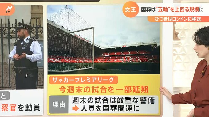 さらにスポーツにも影響があるようなんです。サッカープレミアリーグは今週末の試合を一部延期するそうです。週末の試合は厳重な警備が必要になりますが、試合を延期することによって普段プレミアリーグの警備に当たっている人員を国葬関連の警備に回すことができるので、かなり荘厳な雰囲気の国葬になるのだろうという感じがします。