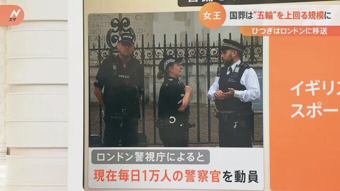 多くの方が参列すると警備も大変厳しくなりますがロンドン警視庁によりますと、現在毎日1万人の警察官を動員してこのエリアの警備にあたっているそうです。