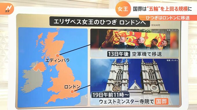 イギリスの現地時間19日午前11時からウェストミンスター寺院で行われるエリザベス女王の国葬。現地メディアによると、五輪を上回る史上初の規模となる可能性があるということです。当日の警備やマナー、政府の注意喚起などを解説します。