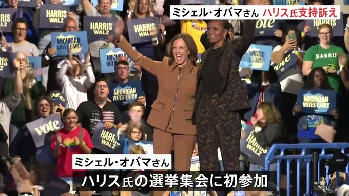 アメリカは大統領選挙まであと10日です。民主党支持者の間で人気が高い元ファーストレディ、ミシェル・オバマさんがハリス副大統領の選挙集会に初めて登場しました。オバマ元大統領の妻 ミシェル・オバマさん「ハ…