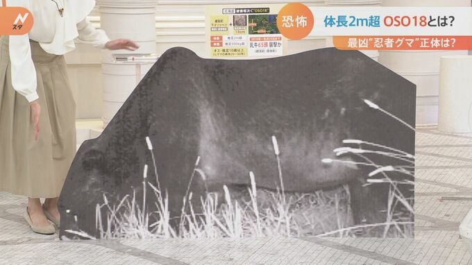 北海道・標茶町の牛たちを襲う巨大ヒグマ「OSO18(オソジュウハチ)」の実物大です。防犯カメラに映し出されたれたヒグマを実物大にしてみました。お尻の部分が切れていますが、かなり大きいことがわかりますが、なぜ「OSO18(オソジュウハチ)」と呼ばれているのでしょうか?