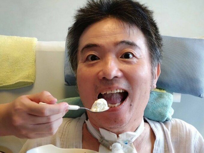 そして「早く馴染ませて…美味しいものを食べたいです♡」「気管切開をしても食べられています♡ 人間ってすごいなぁ~♪」と、その思いを明かしています。