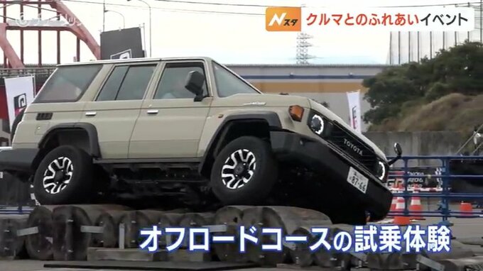 参加者はタイヤが浮いてもなんなく乗り越える車の性能や安全性に感嘆していました。