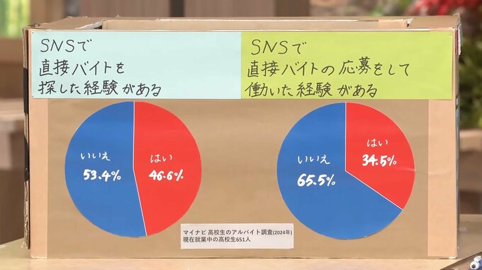 ある調査では今バイトをしている高校生のうち、46%がSNSで直接バイトを探した経験があり、34%が実際に応募して働いた経験があるというのです。