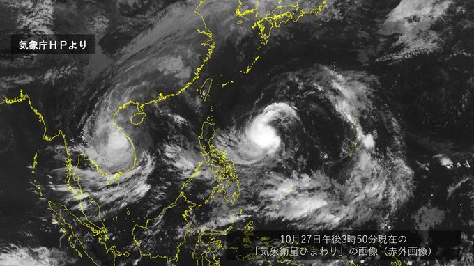 また、大型の台風21号(コンレイ)は、27日午後3時現在、「フィリピンの東」の位置で、時速20kmの速さで西北西へ進んでいます。