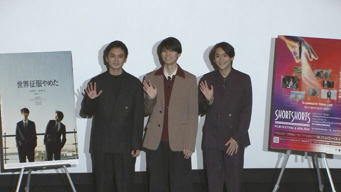 俳優でアーティストの北村匠海さん、俳優の萩原利久さん、藤堂日向さんが「ショートショート フィルムフェスティバル & アジア 2024 秋の国際短編映画祭(SSFF & ASIA 2024)」の『世界征服やめた』ワールドプレミア上映イベントに登壇しました。