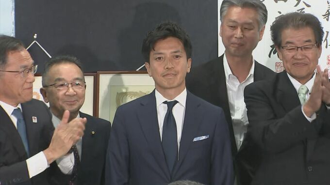 その点では今日当選の報告でありますが、今日からまた皆で新しく一歩前に進めるそういう日にしたいと思っておりますので、これからもどうぞご協力、そして一緒に戦っていただきますようお願いしてご報告の挨拶にしたいと思います。」