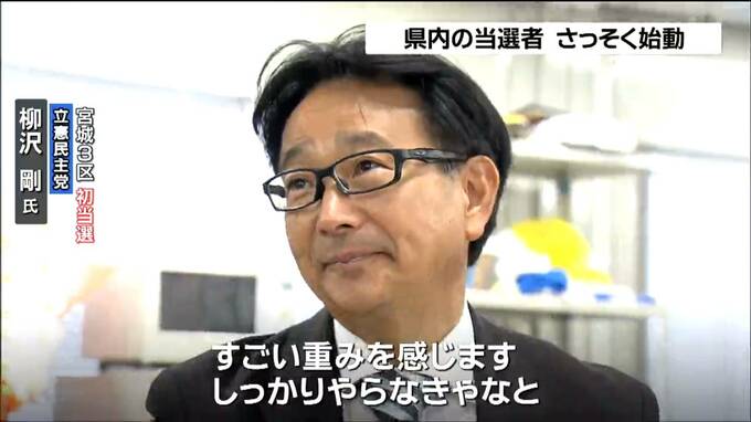 27日投票が行われた衆議院議員選挙は、開票の結果、宮城県内の5つの小選挙区では立憲民主党が4議席を獲得し、自民党は1議席にとどまりました。一夜明け、当選者は喜びをかみしめながらもさっそく活動を始めていま…