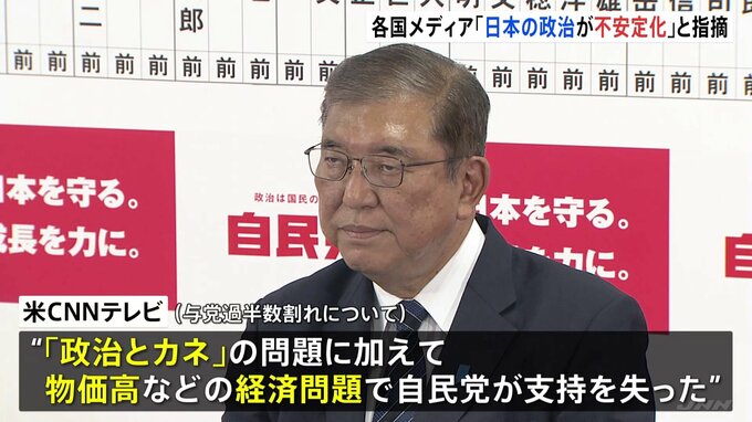 海外メディアは日本の政治が不安定化すると報じています。アメリカCNNテレビは「新総理に大きな打撃」との見出しで、「政治とカネ」の問題に加えて、物価高などの経済問題で自民党が支持を失ったと伝えました。さ…