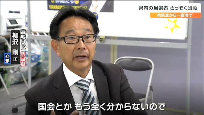 27日、投票が行われた衆議院議員選挙について、宮城県内の5つの小選挙区では、立憲民主党が4議席を獲得し自民党は1議席にとどまりました。一夜明け、県内の当選者は喜びをかみしめながらもさっそく活動を始めまし…