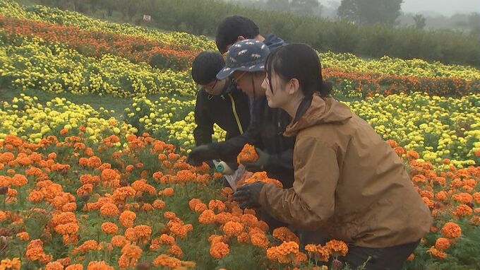 (東海大学 西島矢紋さん)「マリーゴールドの花殻を使って自分たちが羊毛を染める時にどういう色になるのか考えながら摘んでいて、すごく楽しかったです。皆さんに愛してもらえる製品を作って役に立てれば」