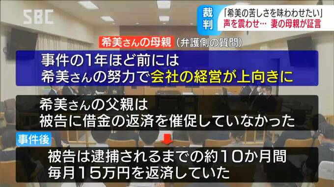 一方、弁護側の質問に対しては、事件の1年ほど前には希美さんの努力で、会社の経営が上向きになっていたこと。