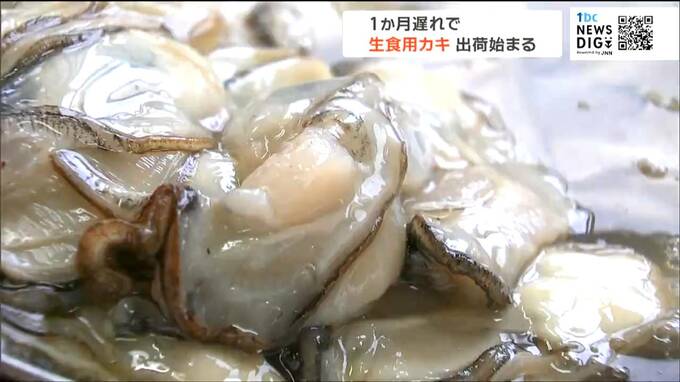 宮城の冬の味覚、1か月遅れでようやくスタートです。海水温の上昇などの影響で成育が遅れていた県内産の生食用カキの出荷が28日から始まりました。このうち石巻市渡波の処理場では、生産者およそ130人が、27日、水…