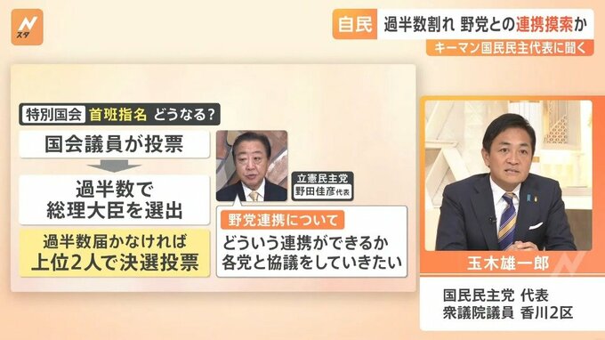 首班指名は「玉木雄一郎」と書きますし、我々の仲間にも書いてもらいたいと思います。決選投票になったらどうするかということですが、ただでどこかの名前を書くことはないので「玉木雄一郎」と書きます。
