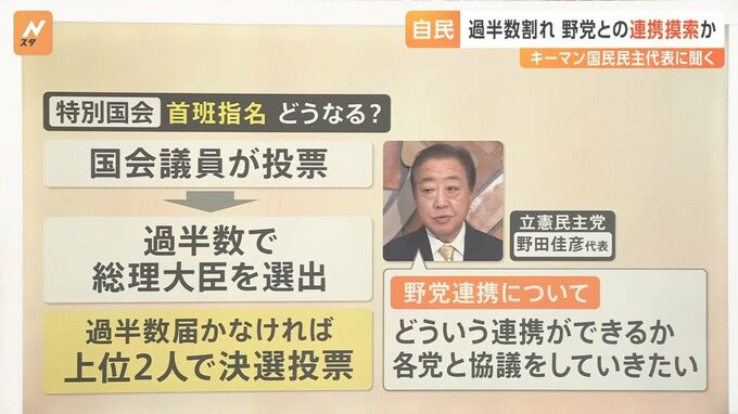 総理指名選挙の前段階で「この部分で連携しましょう」と打診があった場合は、自民党か立憲民主党どちらかの名前を書く可能性もあるということでしょうか。