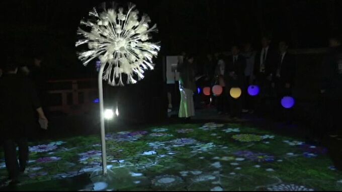 境内を光とアートで演出し、プロジェクションマッピングでかつて流れていた滝を再現するなど、幻想的な空間が広がります。