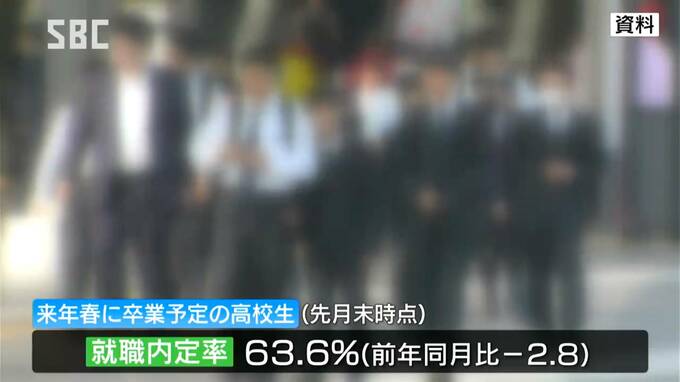 一方、2025年の春に卒業予定の県内の高校生の9月末の時点の就職内定率は、63.6%で、前の年の同じ月に比べて2.8ポイント下回りました。