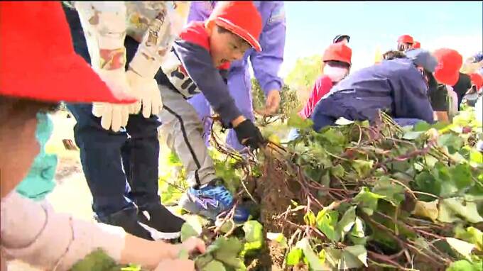 宮城県美里町の小学校で29日、児童たちが地元の高校生らと一緒にサツマイモ掘りを体験しました。「うんとこしょ!どっこいしょ!」、サツマイモ掘りをしたのは美里町の不動堂小学校の1年生児童82人です。29日は、…