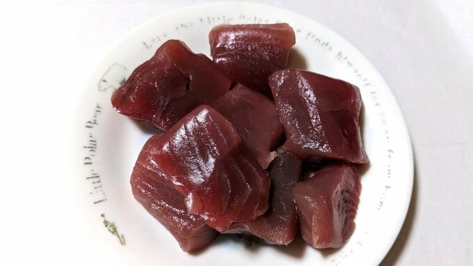 続いてマグロの尾肉刺しをセレクト。冷凍です。