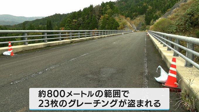 津山市加茂町と鏡野町恩原高原を結ぶ、西原線です。およそ800メートルの範囲で、23枚のグレーチングが盗まれました。盗難防止の鎖がついていましたが、これも切られたといいます。