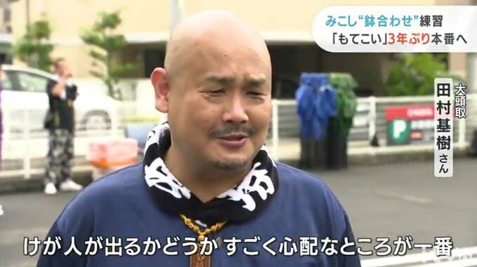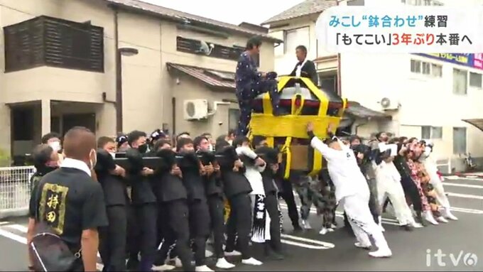 各地の話題を凝縮 JNN DIG 「よっしゃ ぶちかましたるわ もてこい」3年ぶり 道後のけんかみこし“鉢合わせ”練習 あいテレビ 2022年9月14日(水) 15:17 国内 ■新型コロナの影響は練習内容にも… この日は、およそ60人が集まり重さおよそ800キロのみこしを担ぎます。例年100人ほどが参加しますが、感染を心配する家族の反対などで欠席する人も多く、役割りを見直してなんとか練習を行うことができました。 (音頭取りとかき夫) 「あげるぞ せーのっ」 掛け声に合わせて大きな声を出し、タイミングよくみこしを持ち上げられるよう練習します。 (大頭取 田村基樹さん) 「(Q今の気持ちは?)わくわくする反面、久しぶりの祭りなのでけが人が出るかどうかすごく心配なところが一番。」