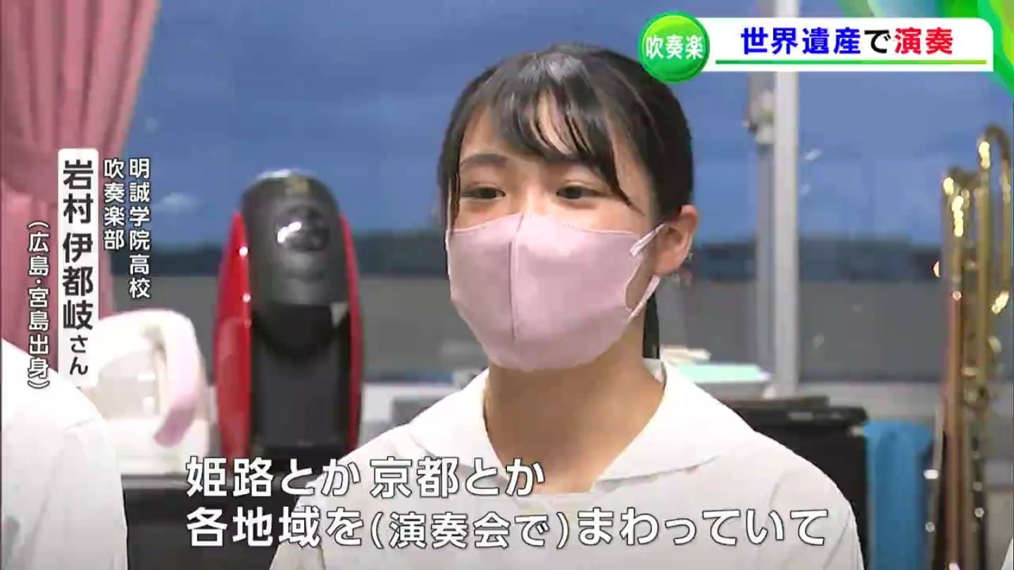 (明誠学院高校吹奏楽部 岩村伊都岐さん(宮島出身))