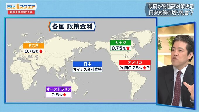 欧米は軒並み物価対策を挙げ、欧州もアメリカも中央銀行が利上げしていますが、日本は全く金利をいじらない。もう少し言えば、世界中で9月は日本だけがマイナス金利を維持するような形になるので、日本の円で借りてアメリカのドルに投資することで投機筋が利ざやを稼ぐ。それが円安の圧力なのですが、日銀が動かないことによって円安が進む。私はついこの前の岸田総理と黒田総裁が会って何を話したか分かりませんが、会うだけで2円近く円高方向に行きますから、日銀がマイナス金利をゼロにする可能性があるとちょっと示唆するだけで、為替は円安の是正に動くと思うのですが、首相がそれを説得することができない。ここは少しムズムズしますね。