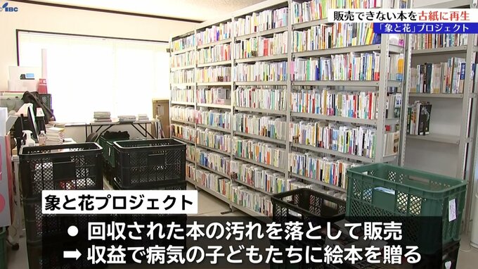 「象と花」プロジェクトは読み終えた本を回収し、汚れを落とすなどして古本として販売した収益で病気の子ども達に新品の絵本をプレゼントしています。
