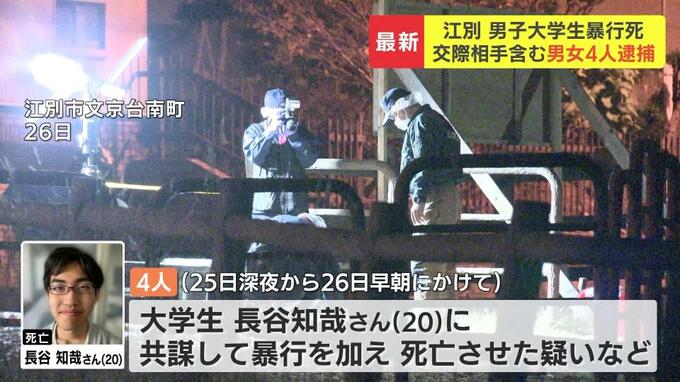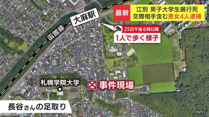 4人は、江別市内の公園で千歳市の大学生・長谷知哉さんを殴る、蹴るなど、暴行を加え死亡させた疑いなどが持たれています。