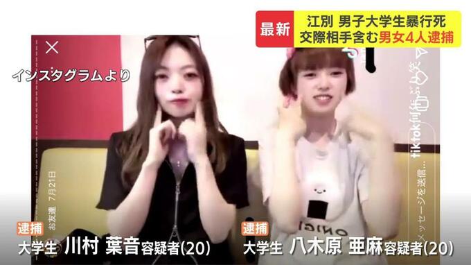 傷害や傷害致死の疑いで逮捕されたのは、江別市の大学生・八木原亜麻容疑者と、川村葉音容疑者、いずれも20歳。