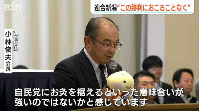 【連合新潟 小林俊夫 会長】「政策が支持されたというよりは、自民党にお灸を据えるといった意味合いが強いと感じています。この勝利におごることなく有権者、生活者のための政治を進めてほしいと思います」