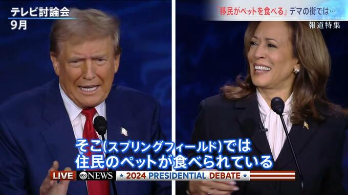9月に行われたハリス氏とのテレビ討論会で、トランプ氏は「スプリングフィールドでは、ハイチから来た不法移民が住民の犬や猫などのペットを食べている」などと主張した。司会者には「そのような事実はない」と否定された。
