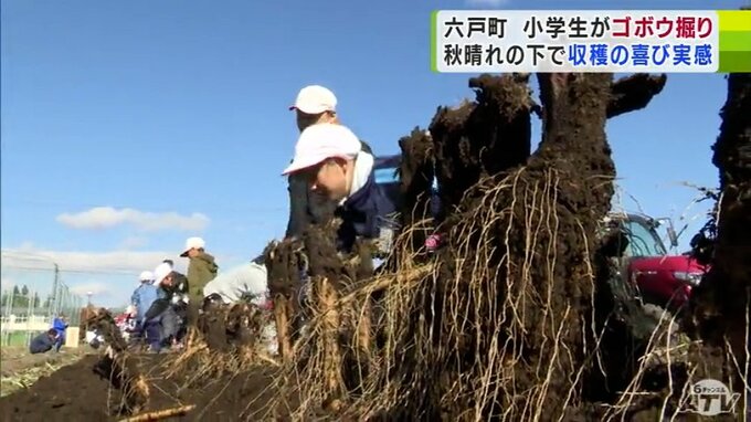 秋晴れが広がった29日の青森県内。六戸町では、小学生が自分たちで植え付けたゴボウを収穫しました。ゴボウの収穫に挑戦したのは、六戸町の六戸小学校と開知小学校の3年生、合わせて43人です。上十三地区で生産が…