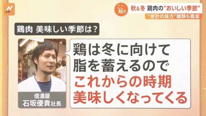 信濃屋 石坂優貴社長によると「鶏は冬に向けて脂を蓄えるので、これからの時期、美味しくなってくる」ということです。