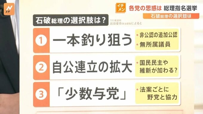 この先、過半数がないなかで、石破総理にはどういう選択肢があるのか考えていきましょう。
